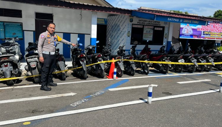 labuhanbaturaya.com– 6 hari pelaksanaan OPS Zebra Toba 2023 sejak tanggal 4 s/d. 9 September 2023, Polres Labuhanbatu telah mengamankan sepeda motor yang tidak dilengkapi dengan STNK pada saat ditindak oleh Tim Khusus Sat Lantas Polres Labuhanbatu, terang Kapolres Labuhanbatu AKBP James H. Hutajulu, S.I.K., S.H., M.H., M.I.K. melalui Kasat Lantas AKP M. Ainul Yaqin, S.I.K., M.H, Minggu (10/09/2023).