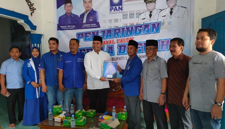 Pengembalian formulir pendaftaran bakal calon Bupati Labuhanbatu 2024-2029 diterima langsung Ketua DPD PAN Labuhanbatu Khojali Nasution SAg didampingi beberapa pengurus DPD PAN Labuhanbatu di kantor sekretariat DPD PAN Kabupaten Labuhanbatu.