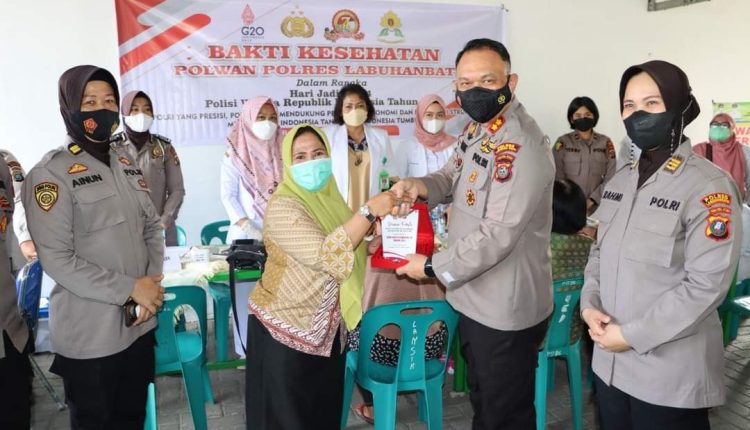 LABUHANBATURAYA.com- Kegiatan Bakti Kesehatan Polwan Polres Labuhanbatu dalam rangka hari jadi Polwan ke-74 tahun 2022 di Puskesmas Kota Rantauprapat Kabupaten Labuhanbatu, Kamis (28/07/2022).