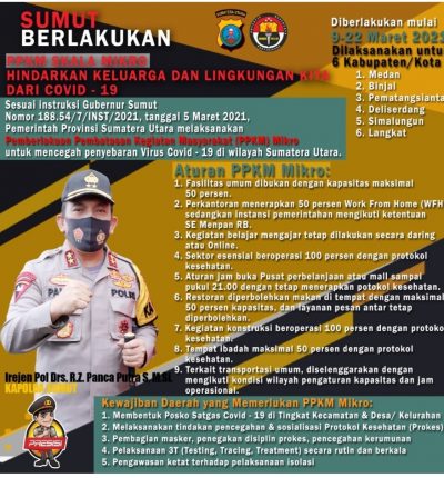 Langkah itu disampaikannya untuk memutus mata rantai penyebaran dan klaster baru Covid-19 di Sumatera Utara. “Sumut adalah bagian dari 12 wilayah di Indonesia yang mendapat perluasan Penerapan PPKM mikro yang didasari Instruksi Mendagri Nomor 6 tahun 2021” katanya, Jumat (19/03/2021).